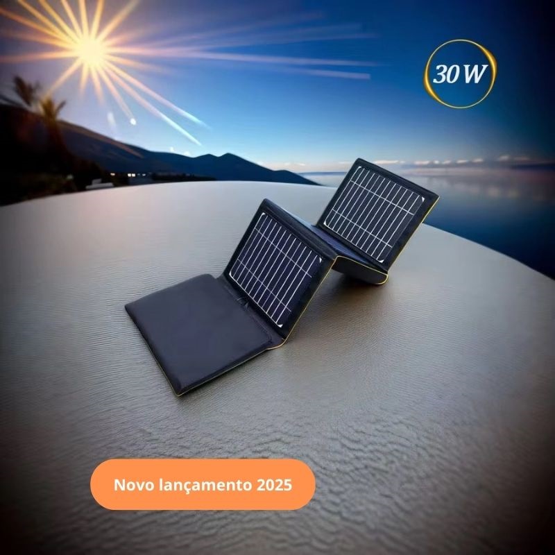 Carregador Solar Dobrável 30W – A Energia Que Você Precisa, Onde Quer Que Vá! Nunca mais fique sem energia durante suas aventuras ao ar livre! O Carregador Solar Dobrável de 30W é a solução perfeita para quem precisa de praticidade, portabilidade e durabilidade. Ideal para trilhas, acampamentos e muito mais!