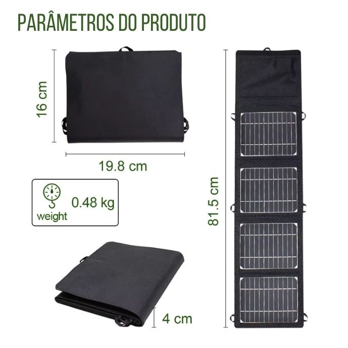 Este painel solar não é apenas um carregador. É uma solução de energia limpa e portátil para quem busca praticidade e confiabilidade. Ideal para acampamentos, trilhas ou até mesmo em casa. Com ele, você tem energia a qualquer hora e em qualquer lugar.